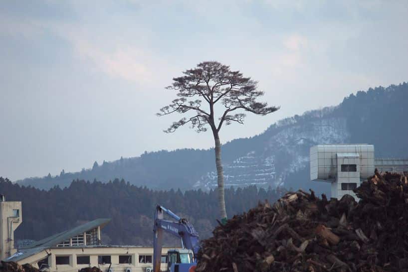 In 2011, the Japanese earthquake/tsunami took out 70,000 trees, an entire forest (!) leaving one single tree standing. This tree was dubbed “the miracle tree” and managed to last another year and a half before succumbing to the contaminated soils surrounding it. The tree was reassembled with a carbon based trunk and plastic leaves and branches as a memorial to the 19,000 victims of the natural disaster.