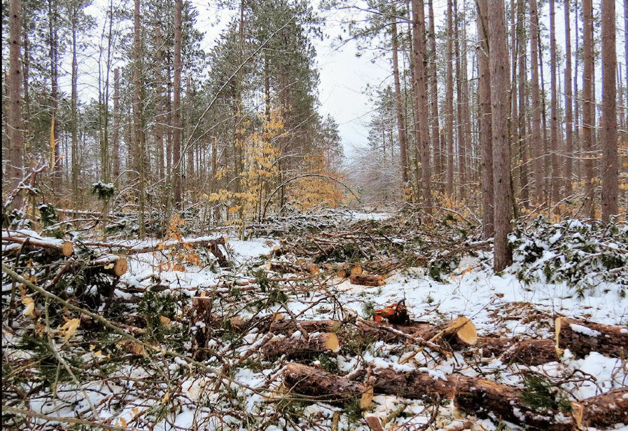 The epic 28-20 March 2025 ice storm that devastated large regions of northern lower Michigan did not spare this property from significant damage. Thanks to timely responses from Bill Cook (initial assessment), the MFA Executive Director and Board of Directors, Dean Reid (consulting forester), and Shephard Forestry (logger), a salvage harvest was initiated in May.
